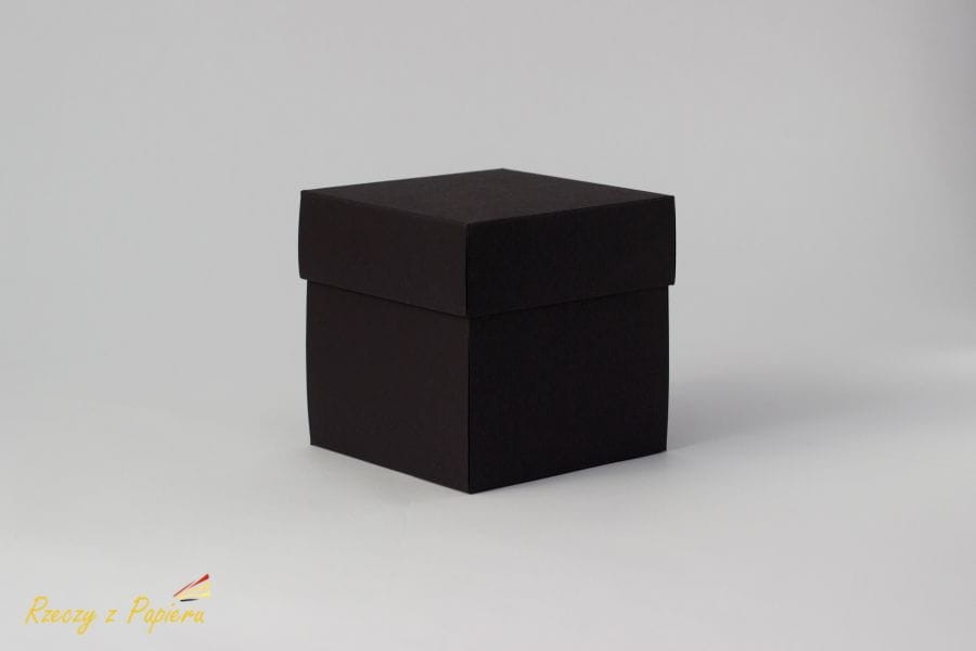 Rozmiar 10x10x10cm, wieczko wys. 3,5 cm. Wykonane z czarnego papieru offset, bezdrzewnego o gramaturze 300gm2. Pudełko składa się z dwóch części, bigowanych na wszystkich krawędziach co ułatwia składanie. Idealnie nadaje się do ręcznego zdobienia. Sprawdzi się jako efektowny podarunek z okazji chrztu, komunii, ślubu. Idealna alternatywa dla kartki okolicznościowej. Pudełko nadaje się do zdobienia różnymi materiałami: mediami, papierami do scrapbookingu itp.