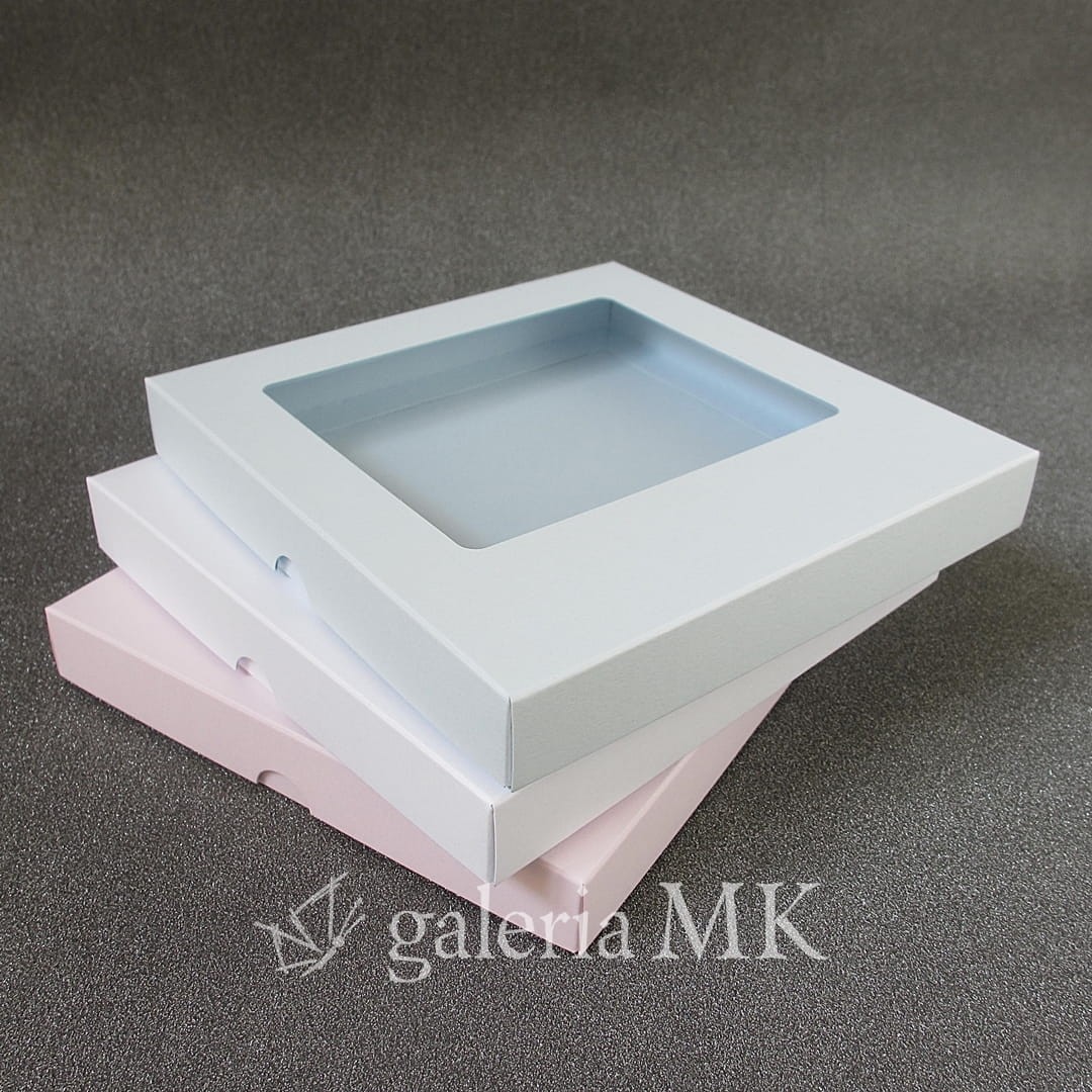 Pudełko z okienkiem, niskie kwadratowe - błękit