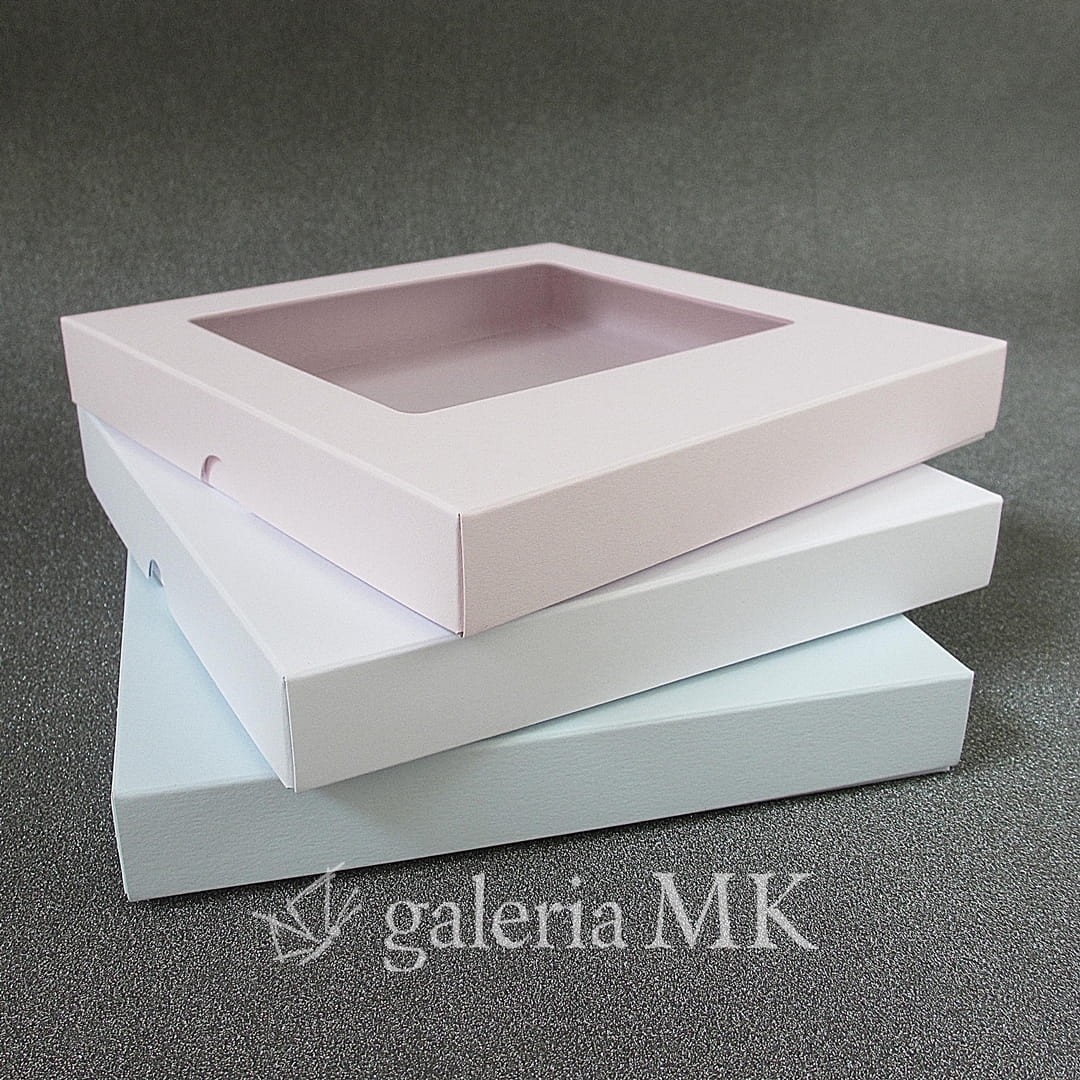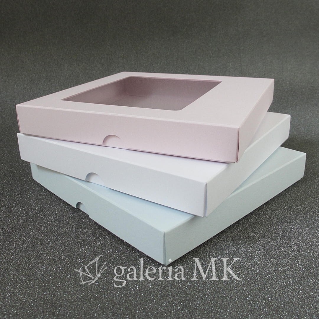 Pudełko z okienkiem, niskie kwadratowe - róż