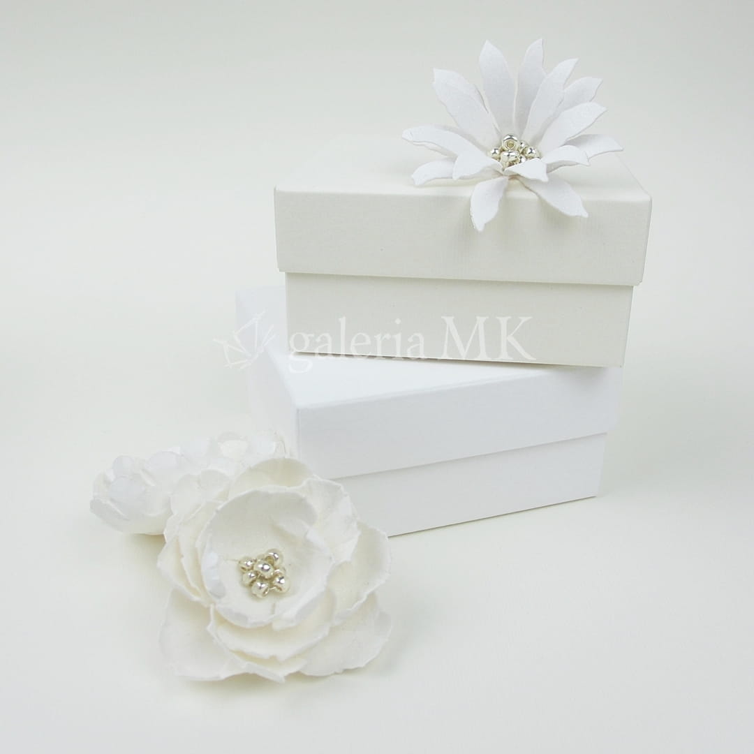 Pudełko na upominek z wieczkiem, pełne, kwadratowe, ma eleganckie wykończenie, nie wymaga zdobień.