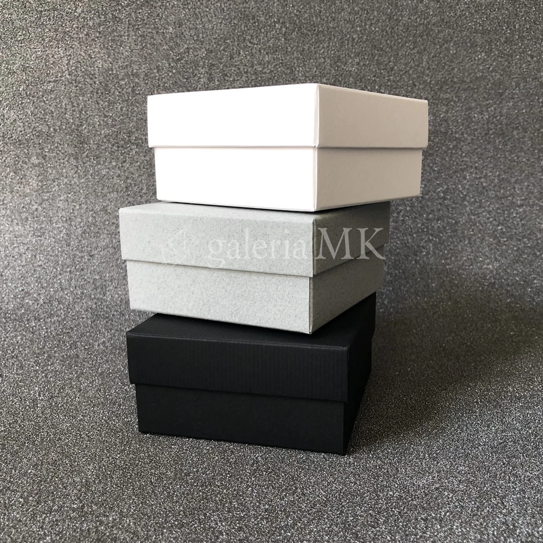 Pudełko na upominek z wieczkiem, pełne, kwadratowe, ma eleganckie wykończenie, nie wymaga zdobień.