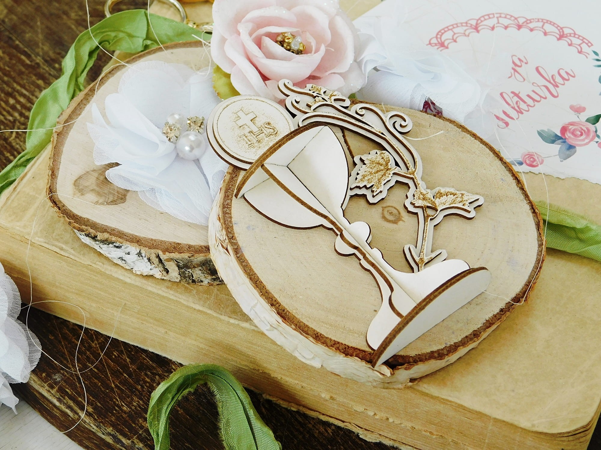 Tekturka - "Komunia 2021" - Kielich 3D z winoroślą-połówka - Twoja Tekturka (K2293)