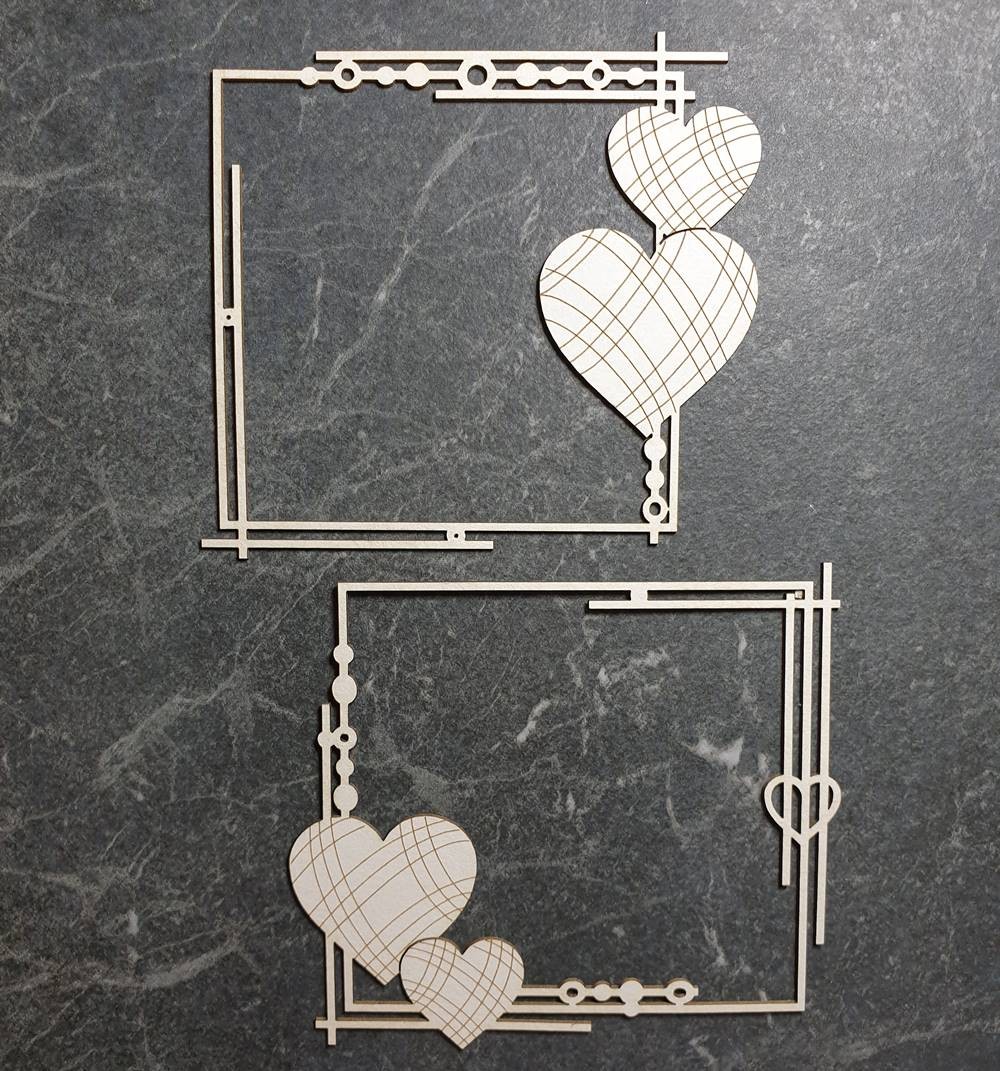 Tekturka przedstawiająca dwie prostokątne ramki ozdobione grawerowanymi sercami.