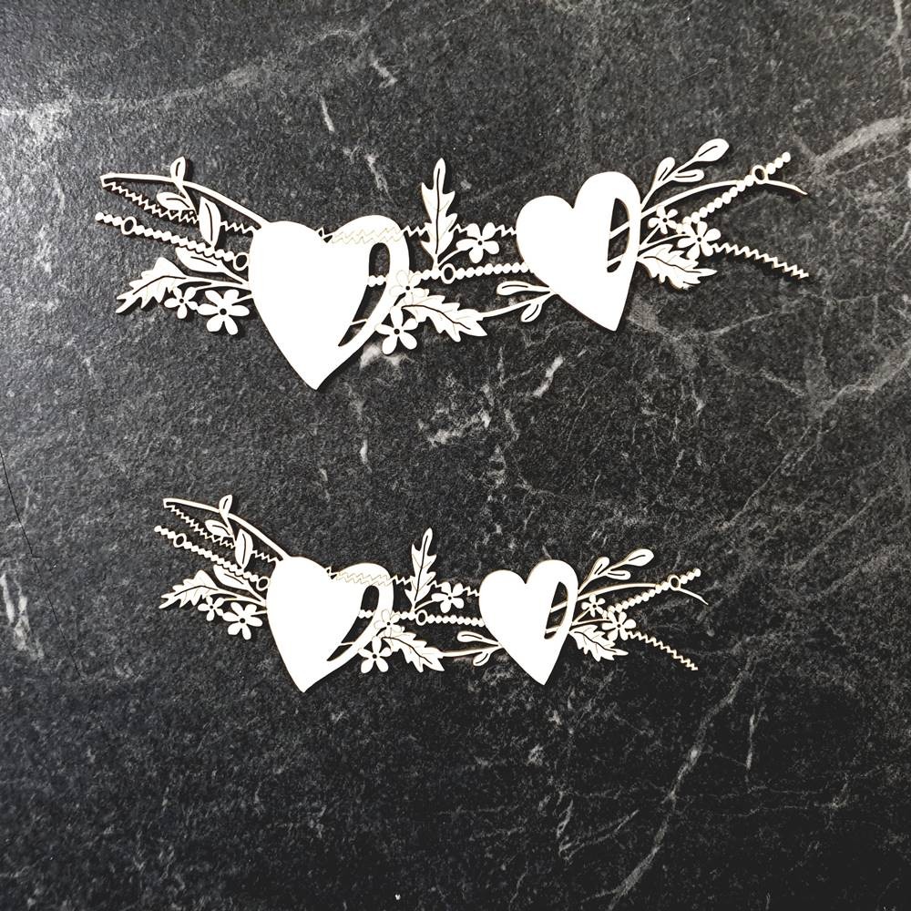 Tekturka przedstawiająca serduszka ozdobione roślinami.