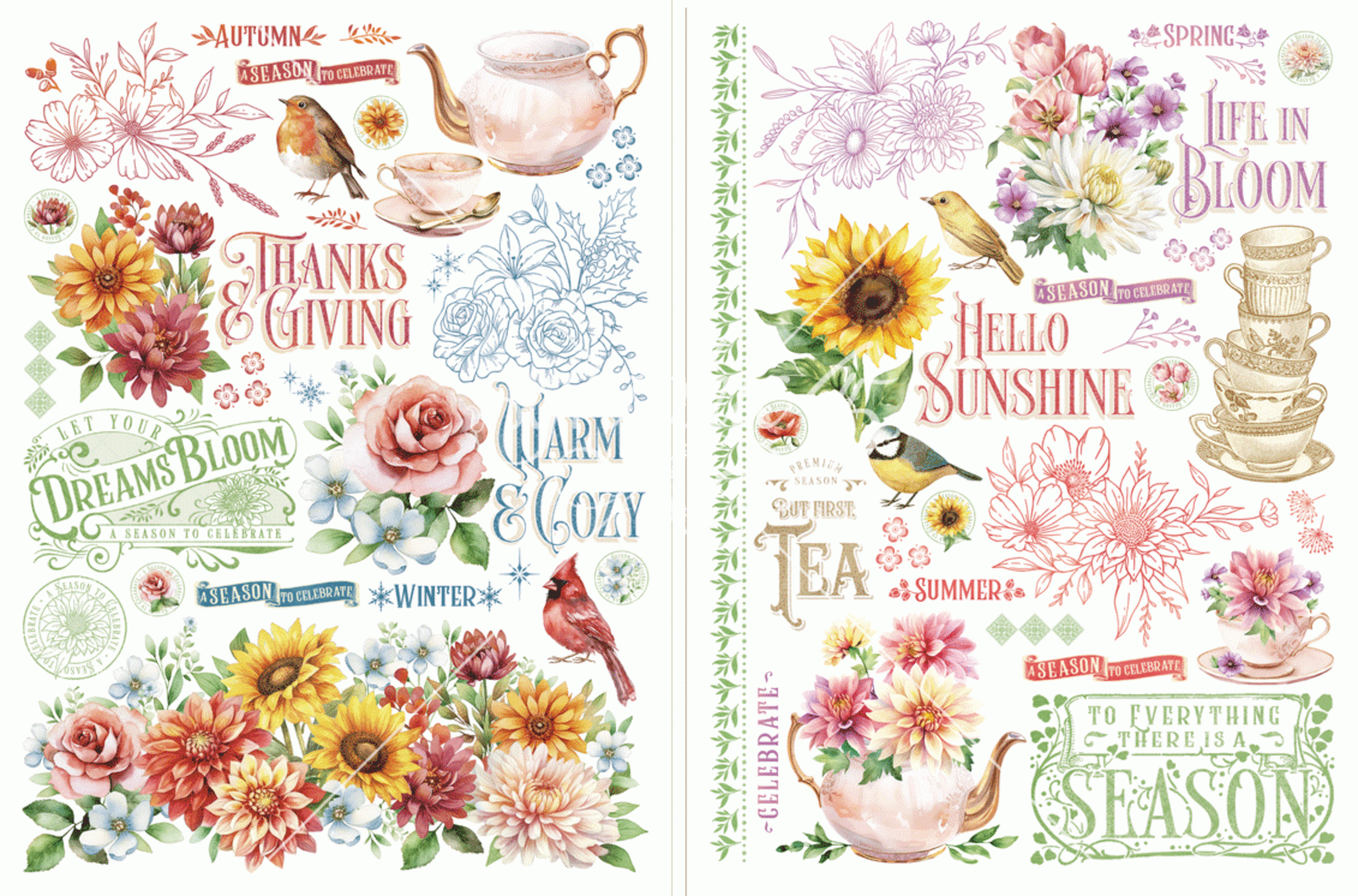 Pełna ponadczasowych wzorów ta kolekcja jest wypełniona bujnymi kwiatami, radosnymi ptakami i świątecznymi elementami, które oddają istotę każdej pory roku. Od słonecznych letnich kwiatów po przytulne zimowe spotkania, Season to Celebrate jest idealny do całorocznego majsterkowania. Dzięki miękkim pastelom, bogatym jesiennym odcieniom i świątecznym zimowym tonom, Season to Celebrate jest idealnym wyborem do tworzenia kartek urodzinowych, dekoracji świątecznych, albumów pamiątkowych i nie tylko.