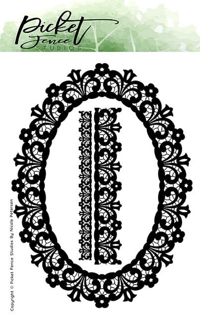 Wykrojnik Koronkowa ramka owalna - Lattice Oval and Trimmings - Picket Fence Studios (PFSD-219)