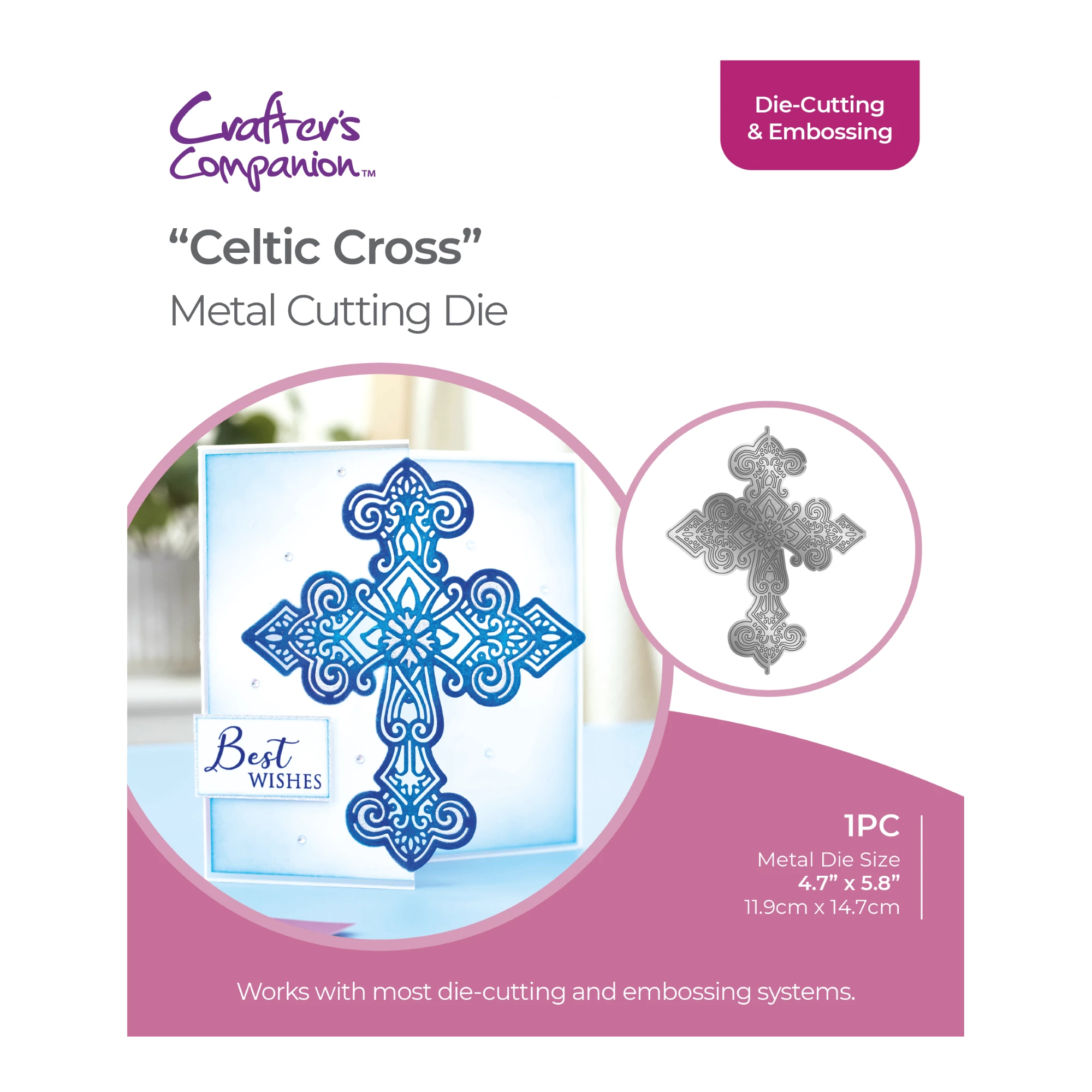 Wykrojnik Celtic Cross wycina tradycyjny wzór krzyża, wypełniony niezwykle misternymi i delikatnymi dekoracjami w stylu celtyckim.