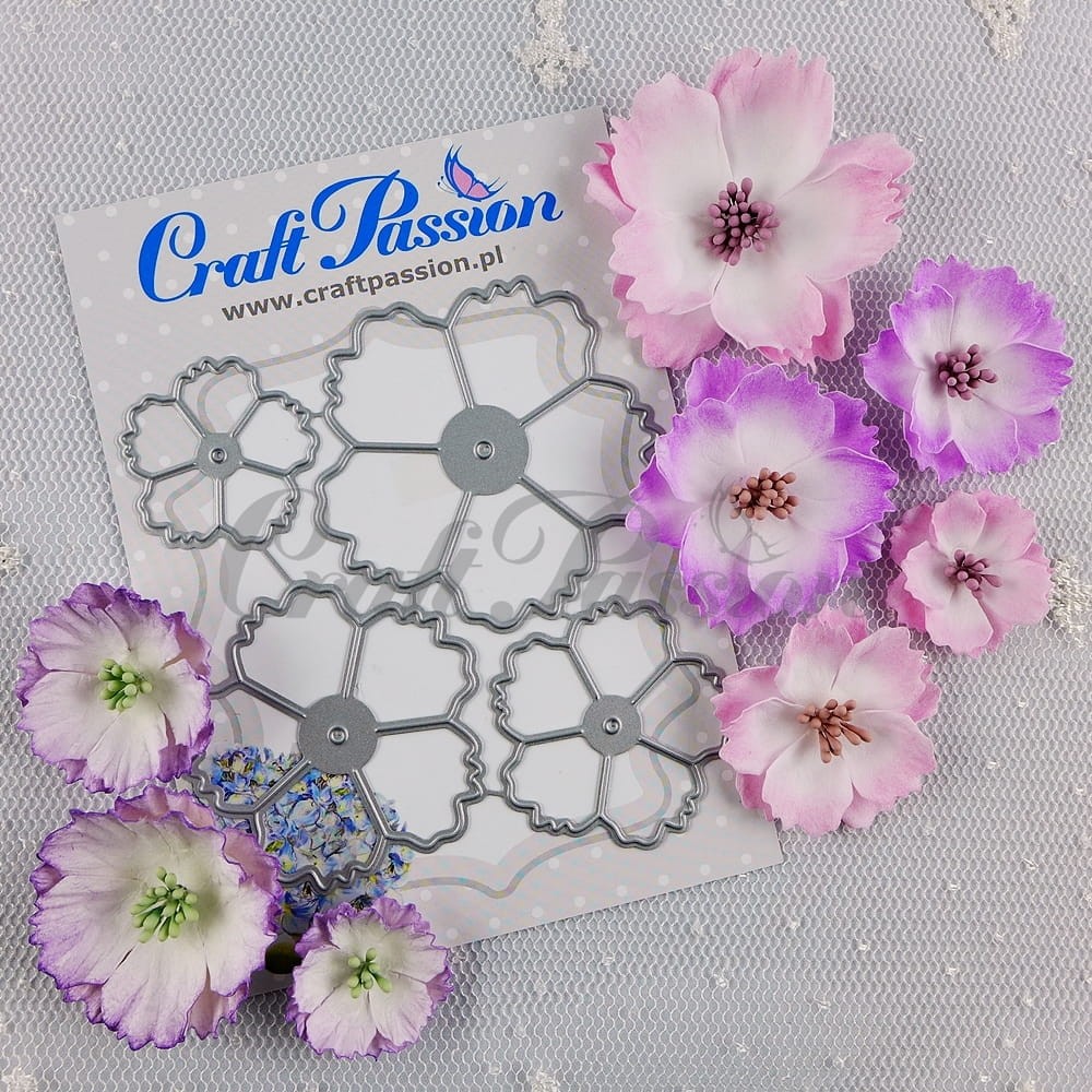 Komplet 4 metalowych wykrojników do wycinania głównie w papierze, piance, filcu przeznaczony do maszynek typy BigShot i podobnych. Wykrojniki są w kształcie danego wzoru, posiadają otworki ułatwiające wyjęcie elementu.