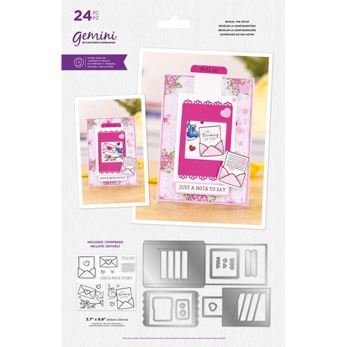 Ten 24-częściowy zestaw zawiera słodki zestaw stempli i wykrojników, dzięki którym można stworzyć uroczego ptaka posłańca trzymającego liścik miłosny, który otwiera się i mówi „Myślę o Tobie” po pociągnięciu języczka.