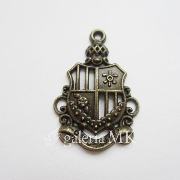 Zawieszka Herb rycerski 19x28 mm - antyczny brąz