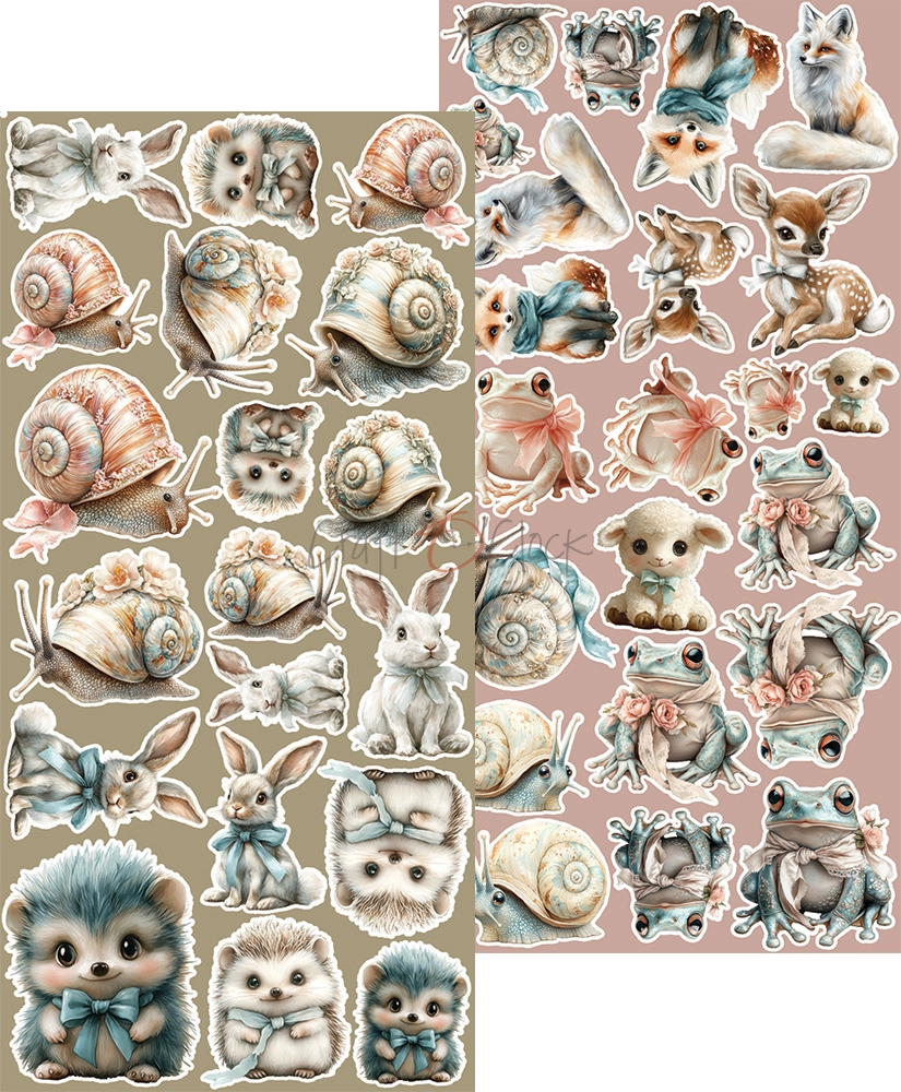 Zestaw 18 arkuszy wysokiej jakości dwustronnego papieru do scrapbookingu z dodatkami do samodzielnego wycięcia - 2 x 9 wzorów.