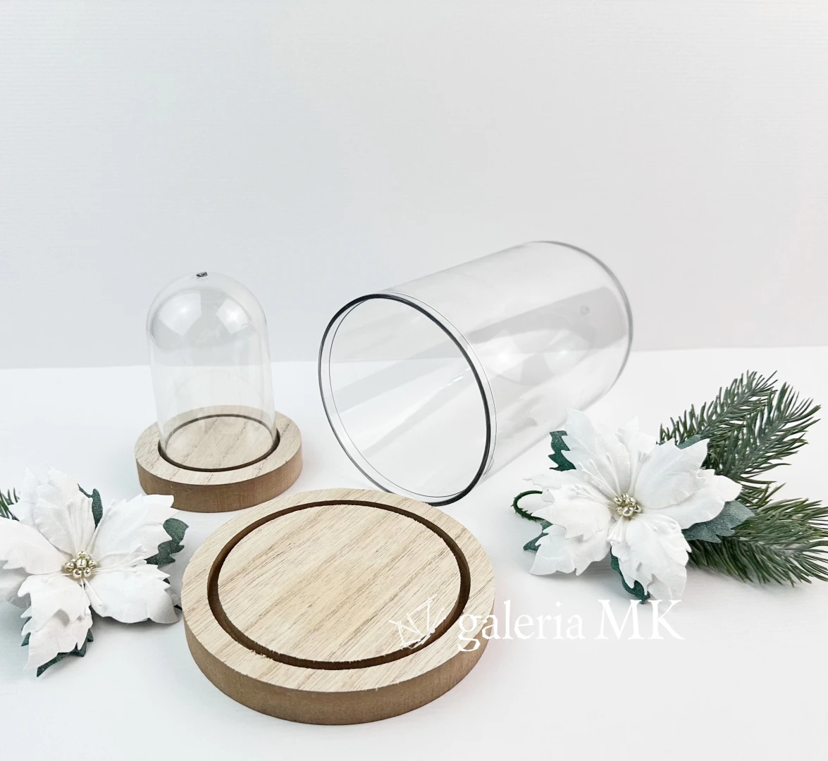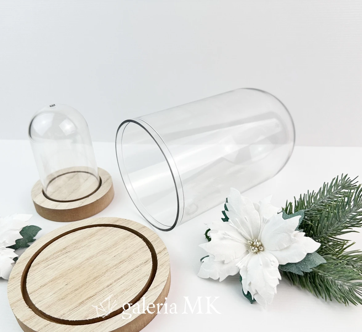 Do każdej kopułki dołączona jest podstawka z drewna.