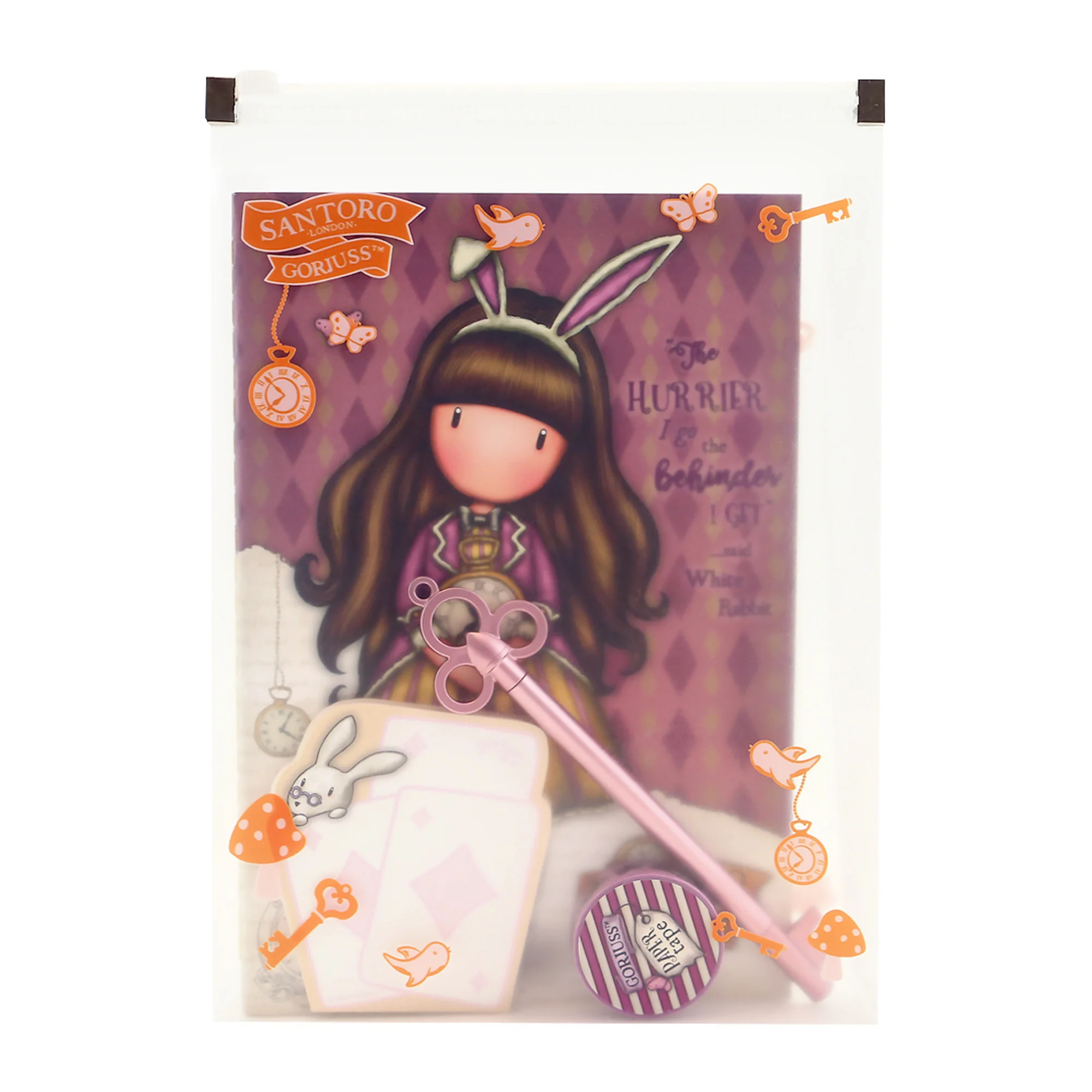 Ten mistyczny zestaw artykułów piśmienniczych Curiosity to niezbędny element biurka. W skład zestawu wchodzi notes, bloczek notatek, taśma papierowa Gorjuss i długopis w kształcie klucza - dzięki temu zestawowi na pewno uwolnisz swoją kreatywność!